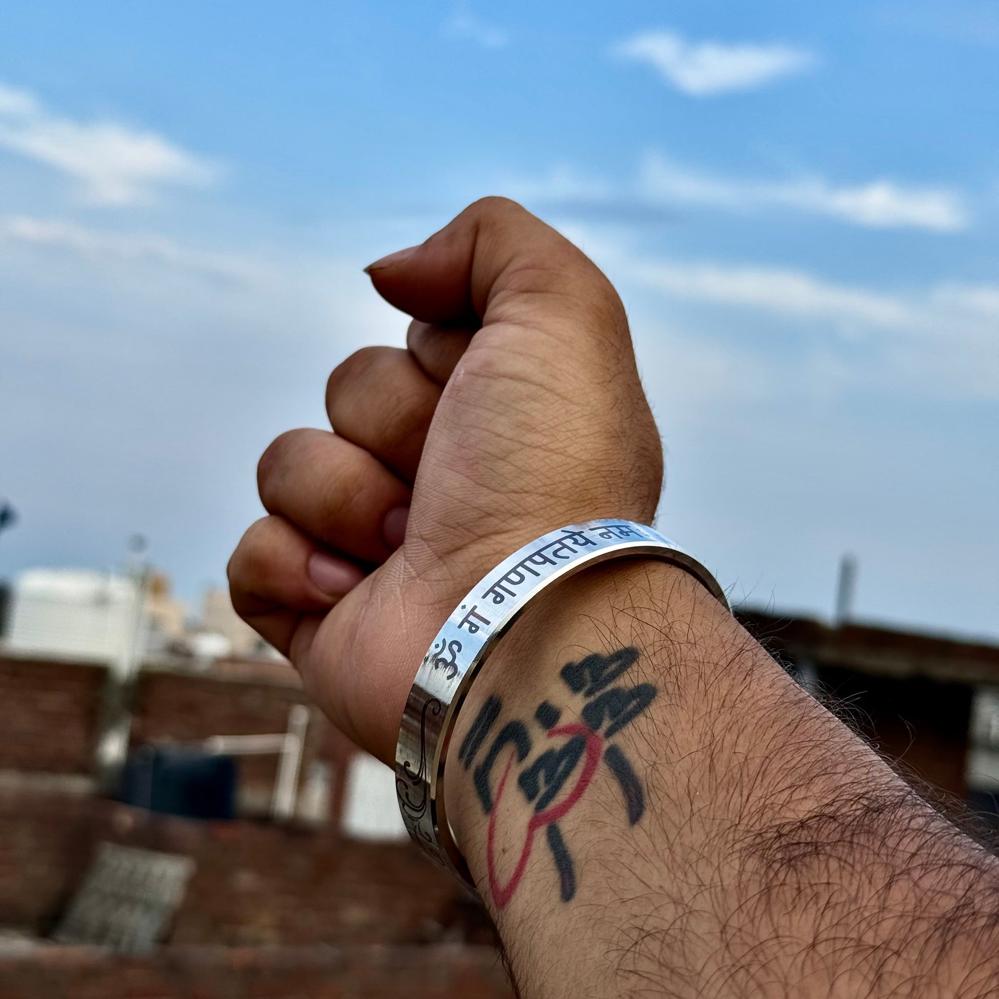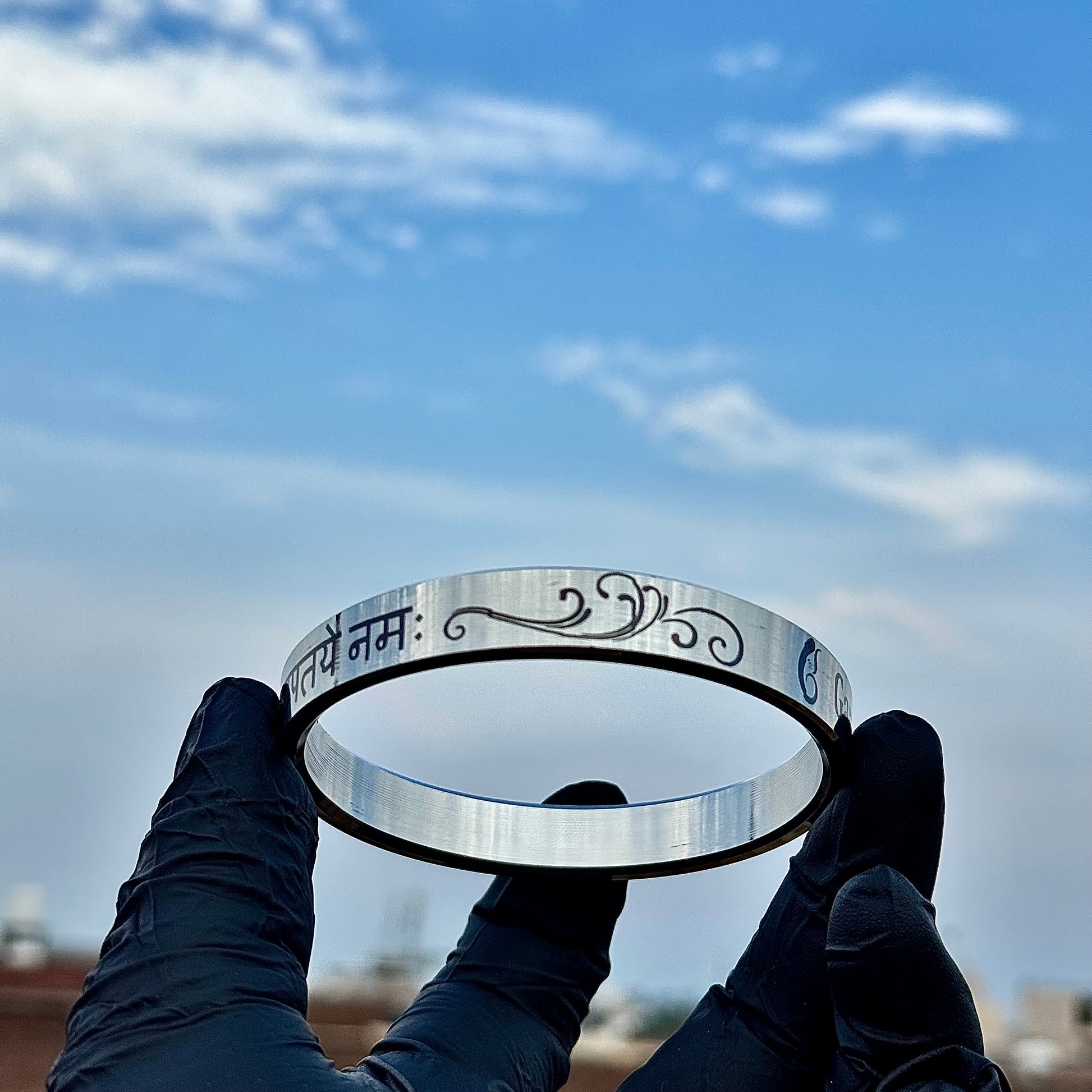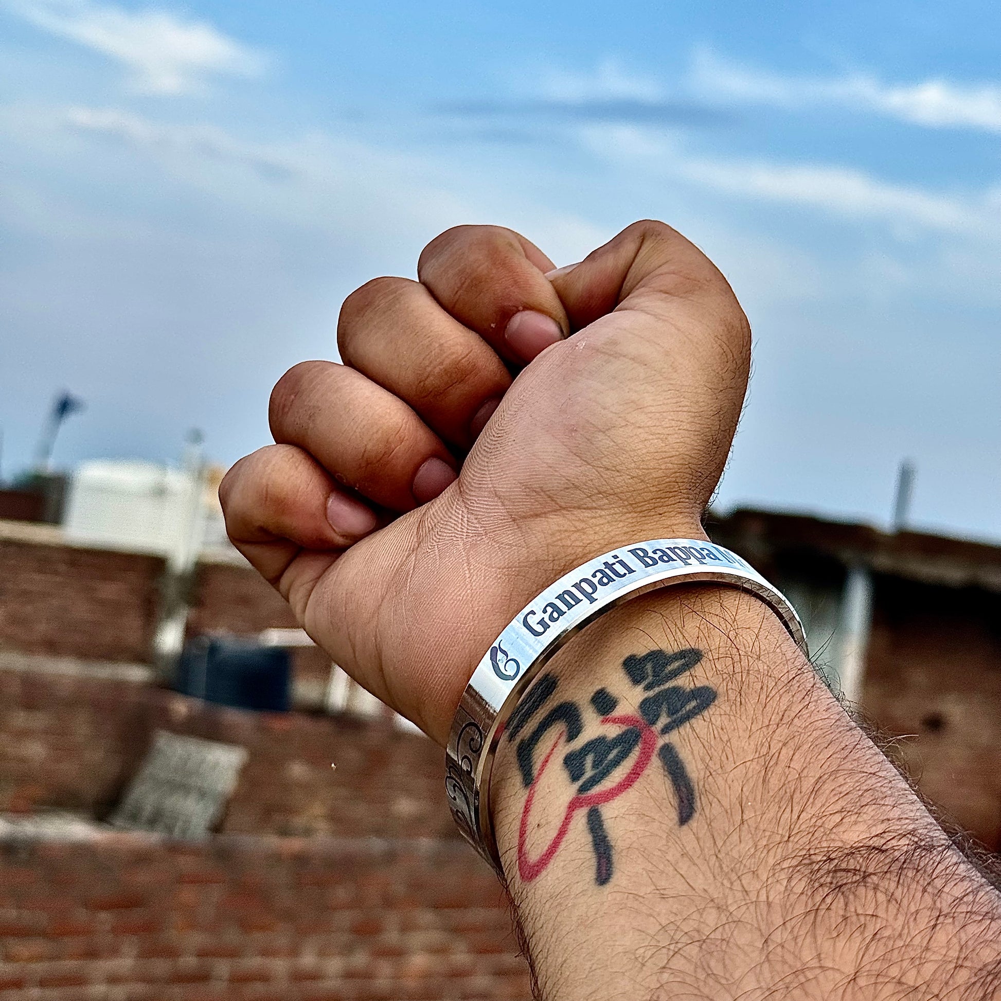 Ganpati Bappa Morya Kada | Stainless Steel Kada with Om Gan Ganapati Namah Mantra