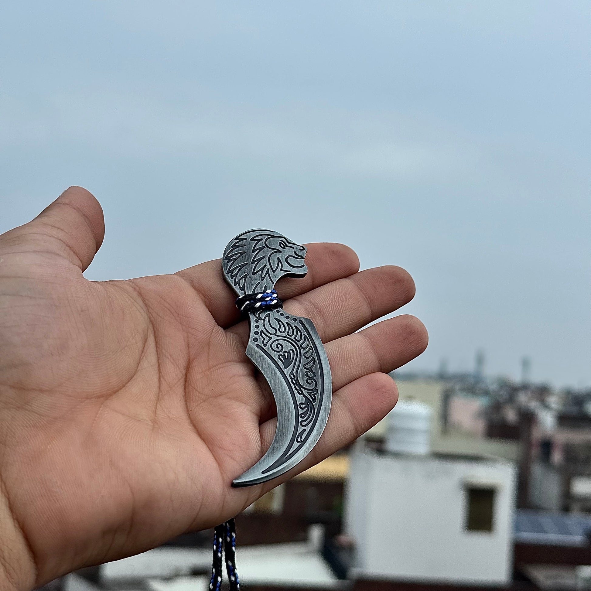 Introducing the Lion Katar Shastar, a powerful shastar inspired by Sikh tradition. Its unique lion face design embodies the strength and courage of a lion, giving you the confidence and capability to protect yourself. Embrace your inner warrior with this historic weapon.