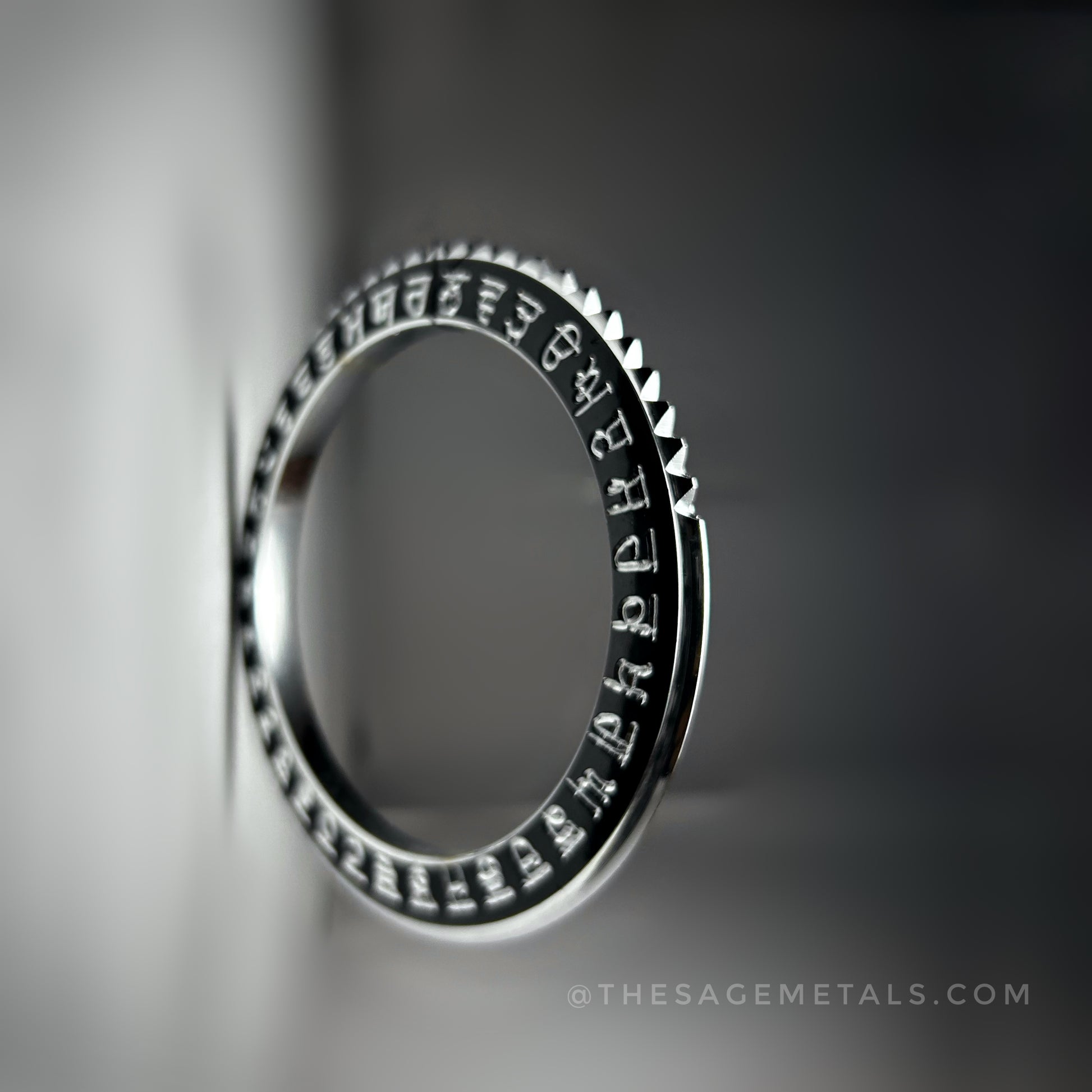This silver spiked Gurmukhi kada is crafted for those seeking a stylish and modern accessory. The intricate Gurmukhi engravings add a touch of cultural significance while the silver spikes give it an edgy look. Made with high-quality materials, this kada is perfect for everyday wear or special occasions.