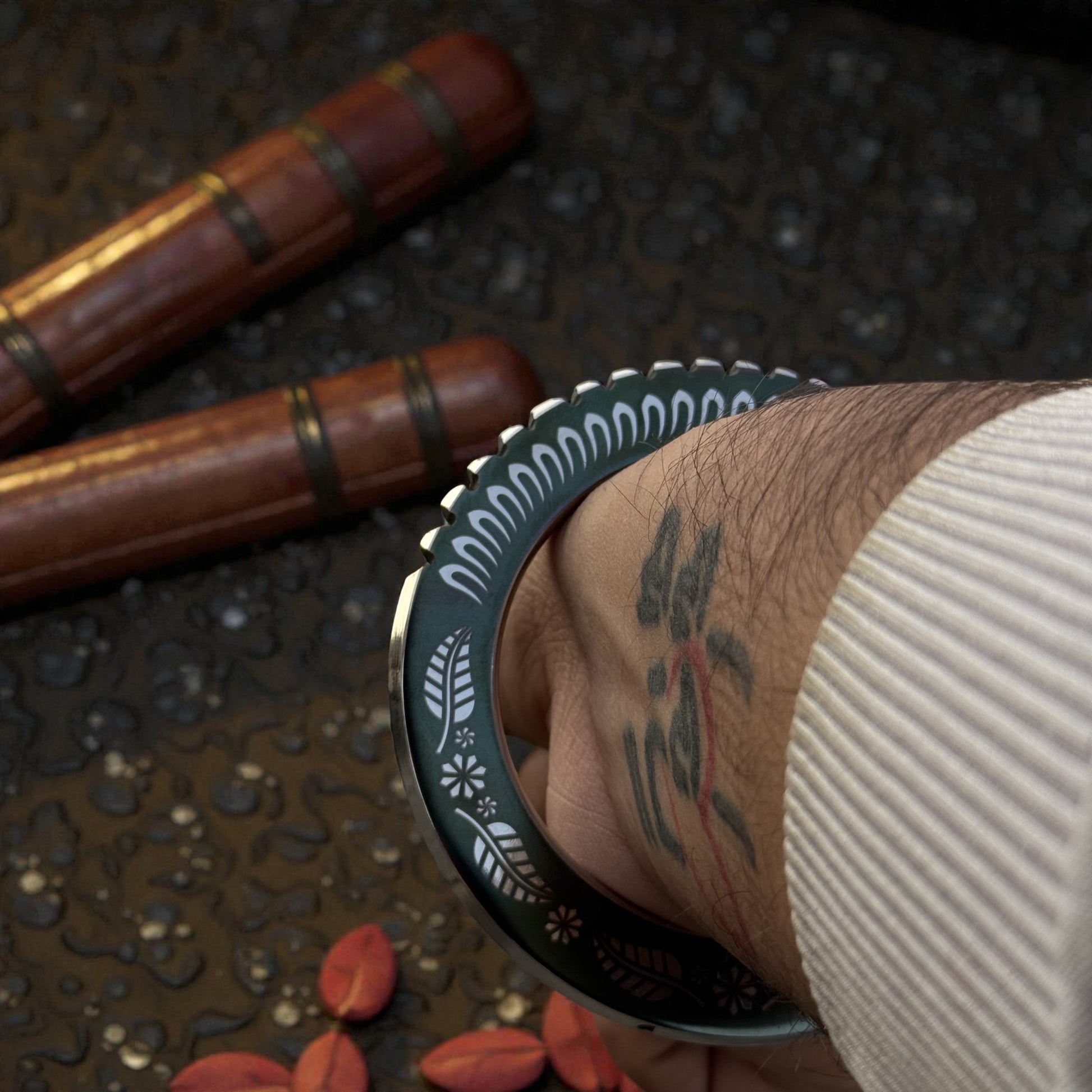 If you want a stylish, masculine and standout accessory, this spiked leafy kada is the perfect choice.
